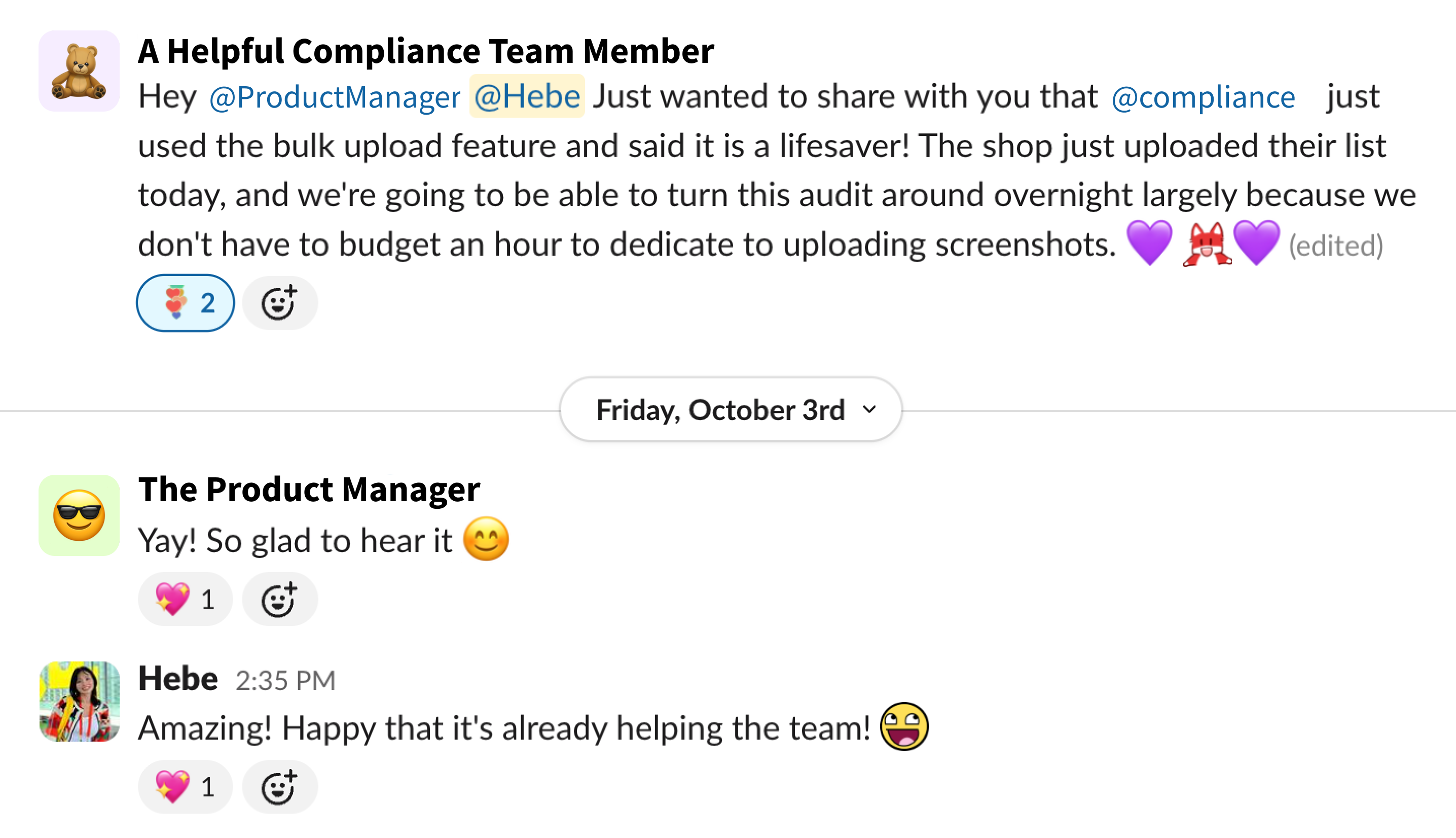 To reduce unnecessary compliance overhead, I designed an auto-approval system for files uploaded by trusted internal users with a @postscript.io email address. This allowed the team to focus on higher-risk reviews.